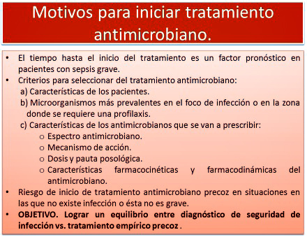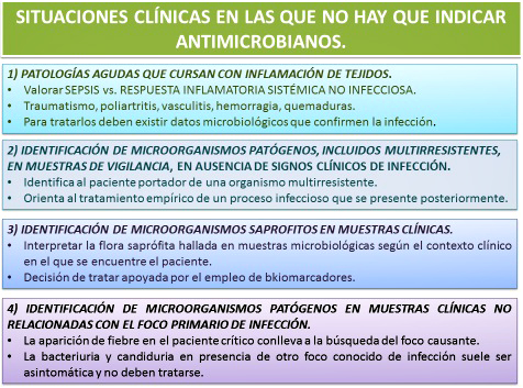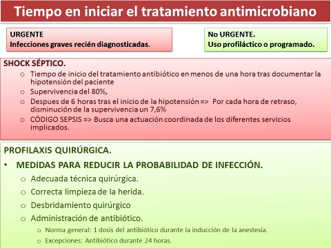 Motivos para la prescripción de antimicrobianos. Sospecha de infección. Profilaxis. Tiempo en iniciar el tratamiento. Situaciones clínicas en las que no hay que indicar antimicrobianos